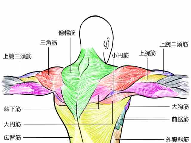 • 肩の表面の大きな筋肉(三角筋)